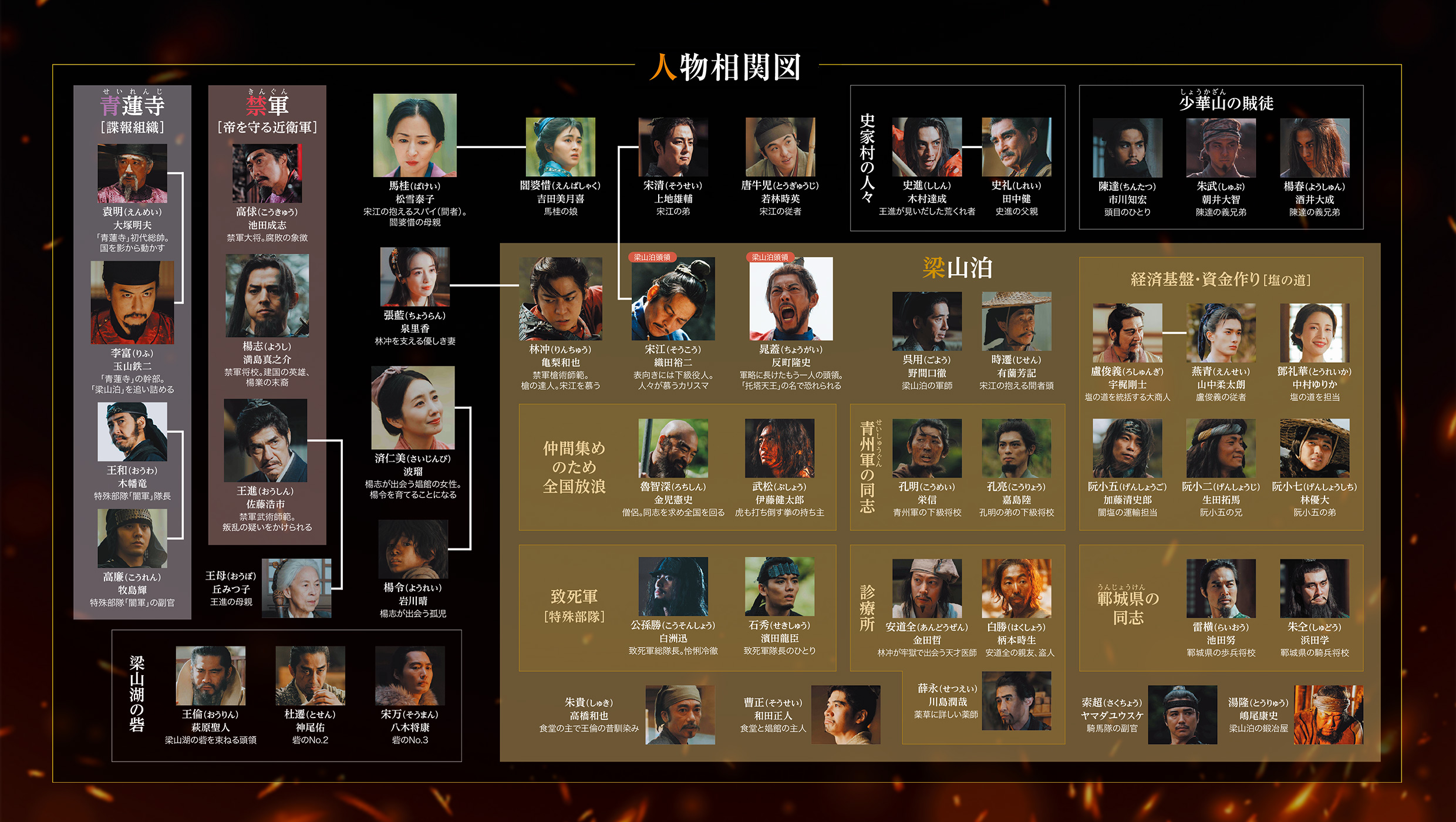 腐敗がはびこる世に、正義を信じるひとりの下級役人が立ち上がった。その名は宋江。彼が記した“世直し”の書『替天行道』は、時代に抗う者たちの心を震わせる。裏社会に生きる者、軍を追われた者、すべてを捨てた者たちが、旗のもとに集結。戦う理由は違えど、志はひとつ。信じる者のため、旗のもとに集結した108人が、国家という巨大な敵に挑む!これは、理不尽な時代を変えようとする者たちの、命を懸けた叛逆の物語。