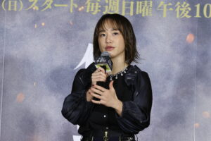 まずは満島が「大先輩たちに囲まれて、ここに参加できたことをすごくうれしく思っております。隣にいる波瑠さんとは何度も共演させていただいてるんですけど、今回の撮影でも本当に温かい気持ちで支えていただいて、本当にありがとうございます」とコメント。一方の波瑠は「この『水滸伝』は、とても大きな志を描いていて。戦う男性たちの姿がとても力強いんですが、そこに私たちが演じた家族も描かれていまして。そういう部分に温かさを見つけてもらえたらうれしいなと思います」と語りかけた。